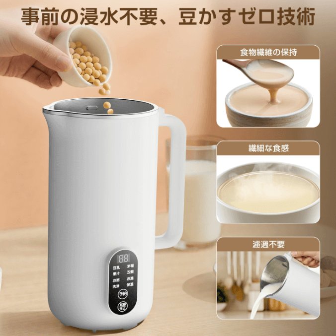 MoonRiverの豆乳メーカーは、時短と手軽さ、そして多機能が魅力です。 一方で、焦げ付きやお手入れ、動作音にはコツと配慮が必要です。向いている人は、予約や保温を活かしたい人、スープやドリンクづくりを習慣にしたい人、650ml前後の量がちょうどよい人です。